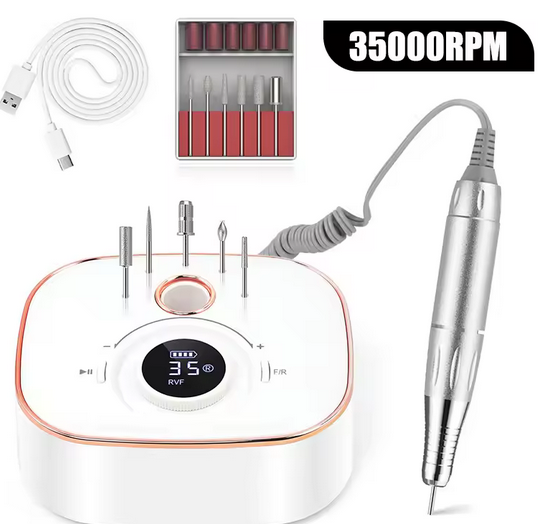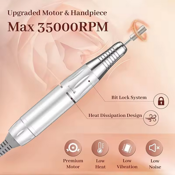The brushless motor delivers up to 40,000 RPM for smooth and precise nail work.